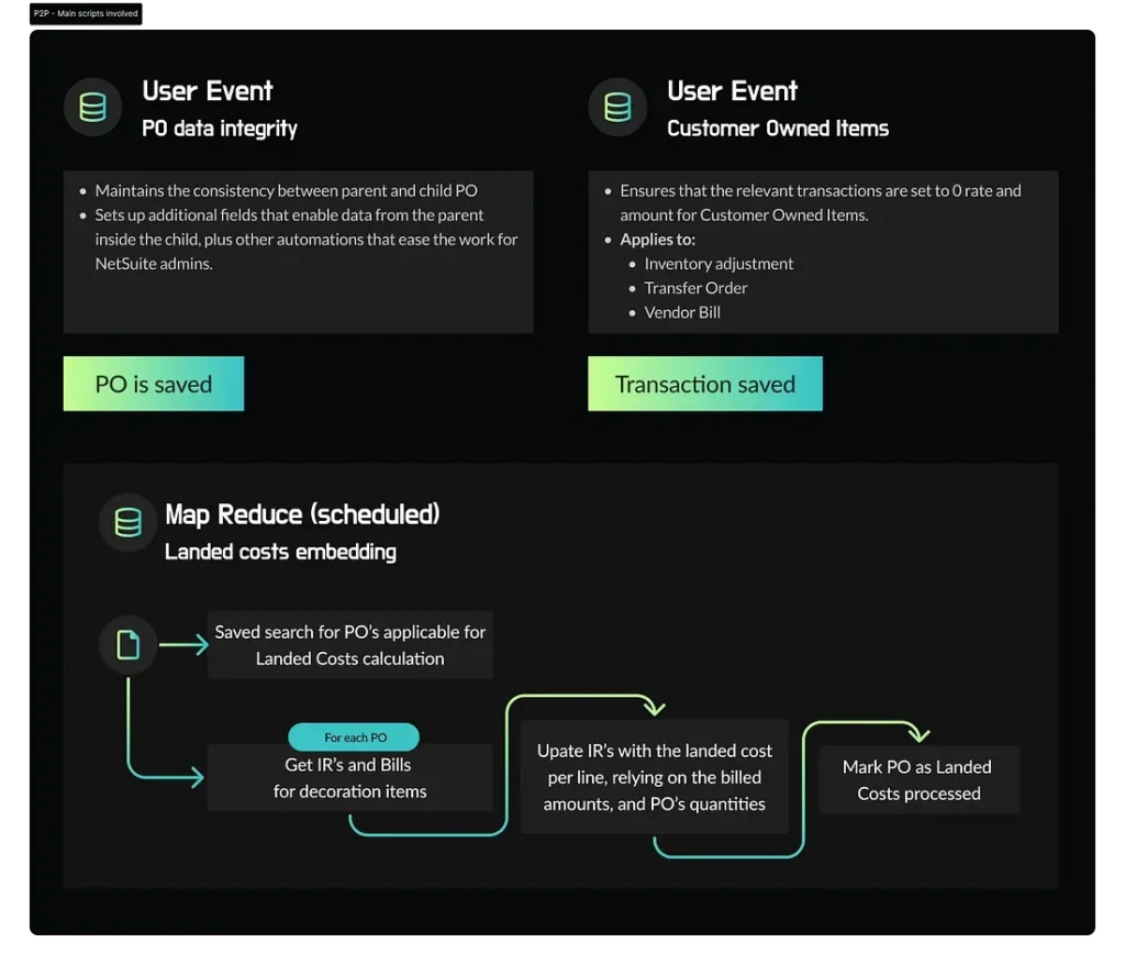 Aside from the Landed Costs calculation, to ensure data consistency and integrity we required additional scripts that support the overall customization.