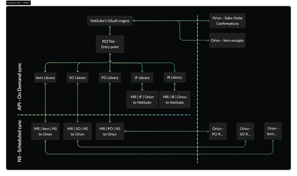 Our Client designs bold, high-performance eyewear for adventure-seekers. Their logistics and distribution rely on Orion, which required seamless communication with NetSuite for inventory, orders, and fulfillment updates.